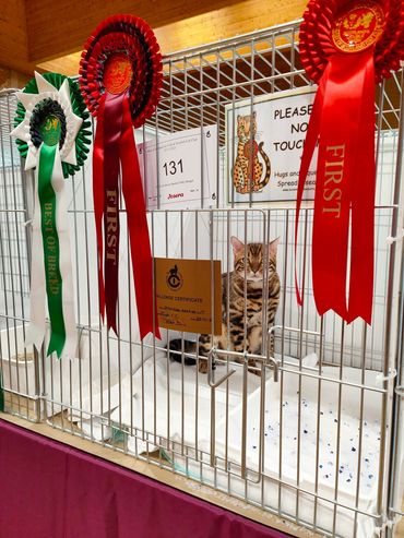 Our cats are tested In advance for PRA-b, PKDef and are HCM scanned annually. Our passion for bengals started when we got our first kitten Tora and we fell in love with his loyal and friendly nature. We acquired our first breeding/showing pair in 2023 from Stamford Bengals and we are dedicated to breeding healthy and well socialised kittens for families to enjoy.